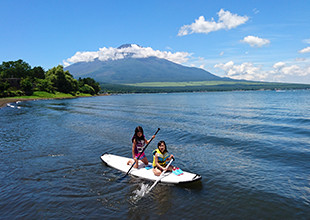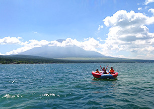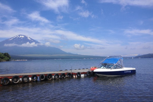 富士山をバックに水面を走る爽快感は山中湖